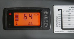 多功能儀表盤可以直觀顯示叉車各種信息、蓄電 池電量、行駛速度、警示燈信號、動力模式等 |