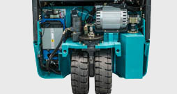 三支點電動叉車采用轉(zhuǎn)向模式, 減少轉(zhuǎn)彎半徑,適用于特殊工況。 |