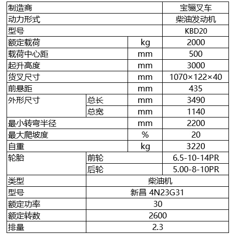 2.0噸內(nèi)燃平衡重式叉車